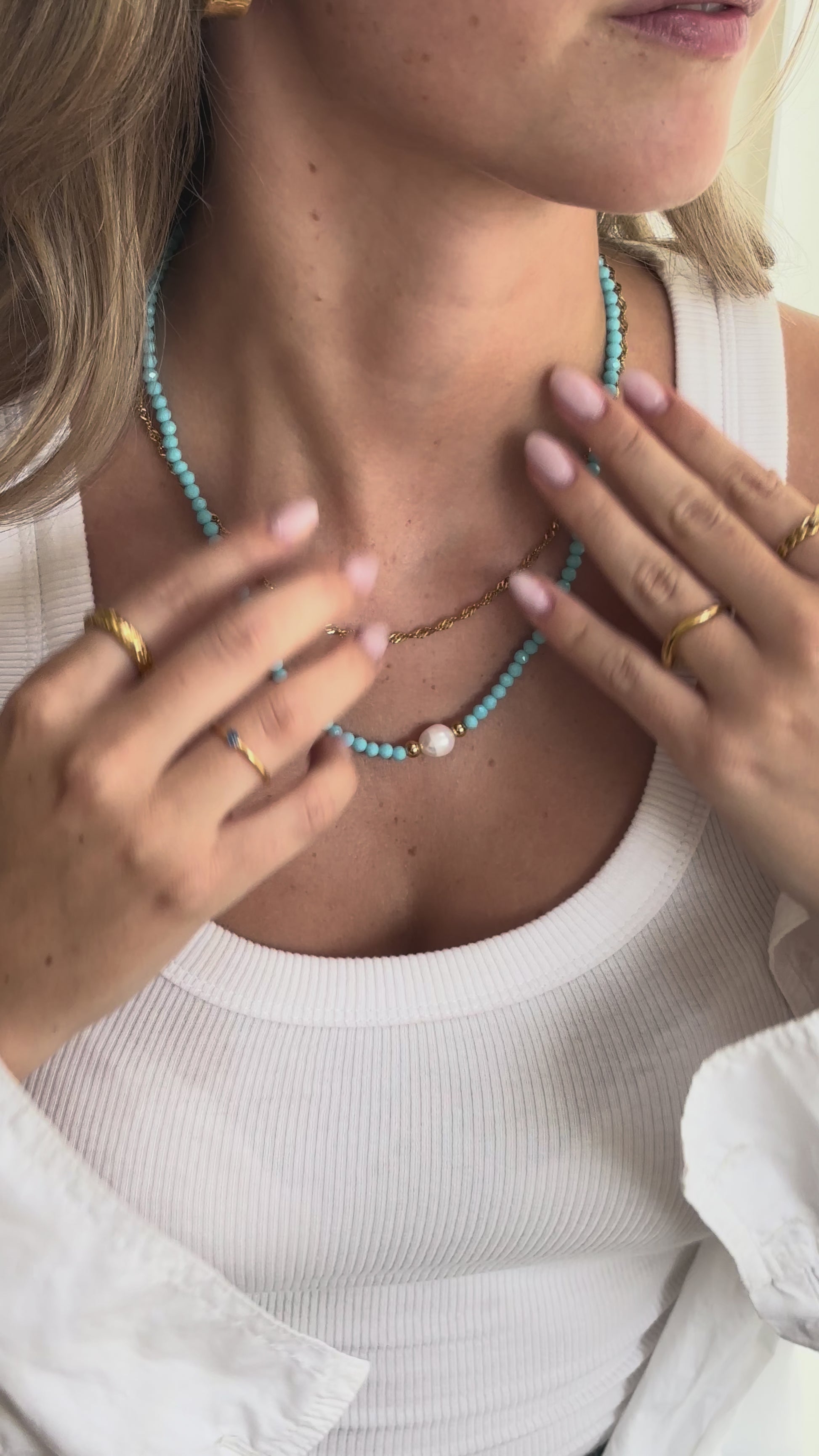Добавете нотка лятна свежест и елегантност към визията си с това ръчно изработено колие. Комбинацията от фасетирани смолни мъниста, лъскава сърцевина от неръждаема стомана и изискано 18-каратово златно покритие прави това бижу перфектният ежедневен спътник - независимо дали се носи самостоятелно или на пластове.